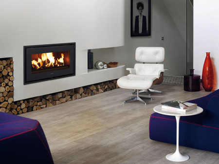 Installation en foyer dans une cheminée neuve ou en insert à intégrer dans une cheminée existante